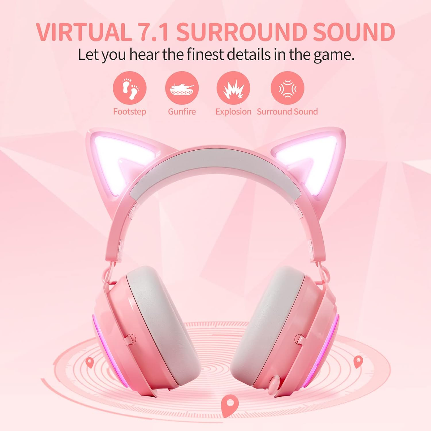 - Auriculares inalámbricos para juegos de 2,4 GHz: auriculares inalámbricos SOMiC con forma de oreja de gato y micrófono que proporcionan una conexión estable y una latencia ultrabaja de 0,02 s. Conecte los auriculares para juegos de forma inalámbrica a sus consolas PS4, PS5 y PC a través del transmisor USB incluido.